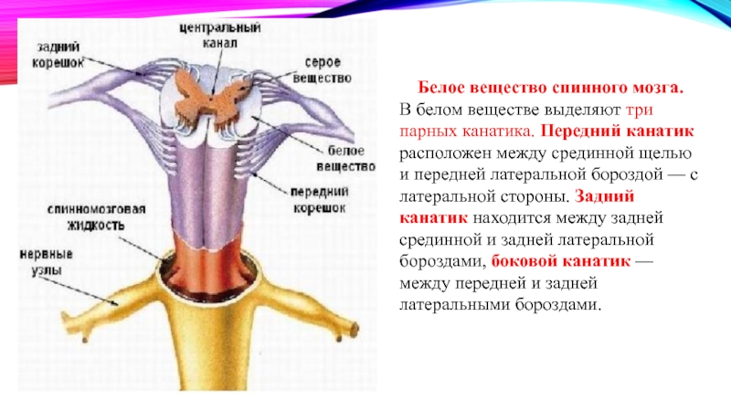 Слайд 23В глубине всех канатиков, в непосредственной близости от серого вещества, лежат