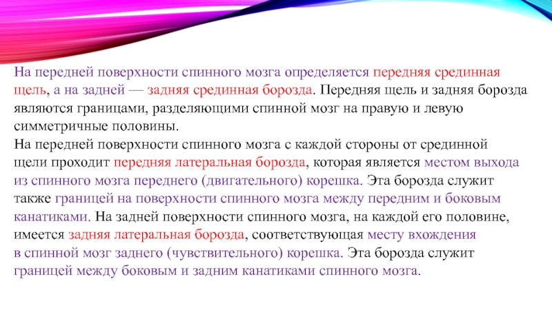 Слайд 17На передней поверхности спинного мозга определяется передняя срединная