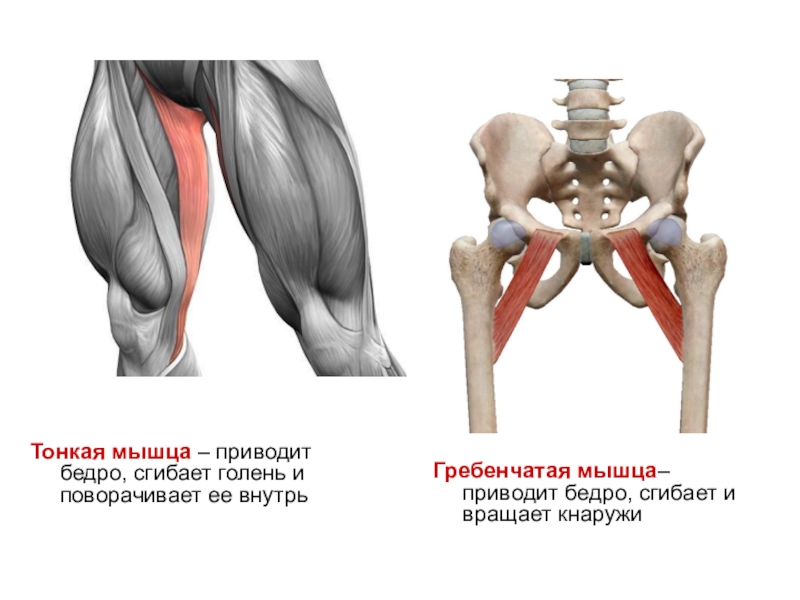 Тонкая мышца – приводит бедро, сгибает голень и поворачивает ее внутрь