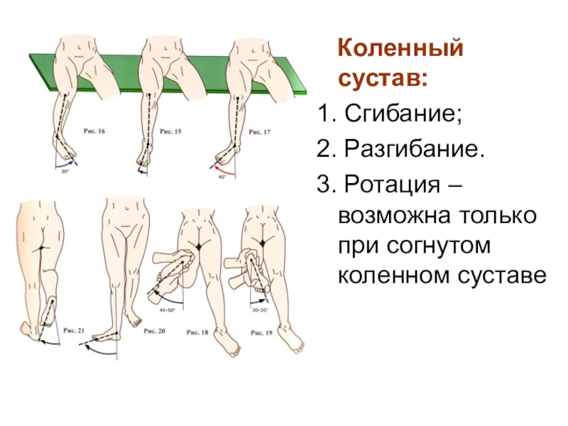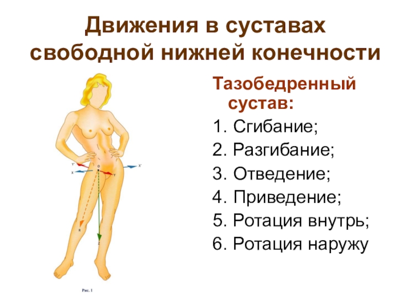 Слайд 29Движения в суставах свободной нижней конечности