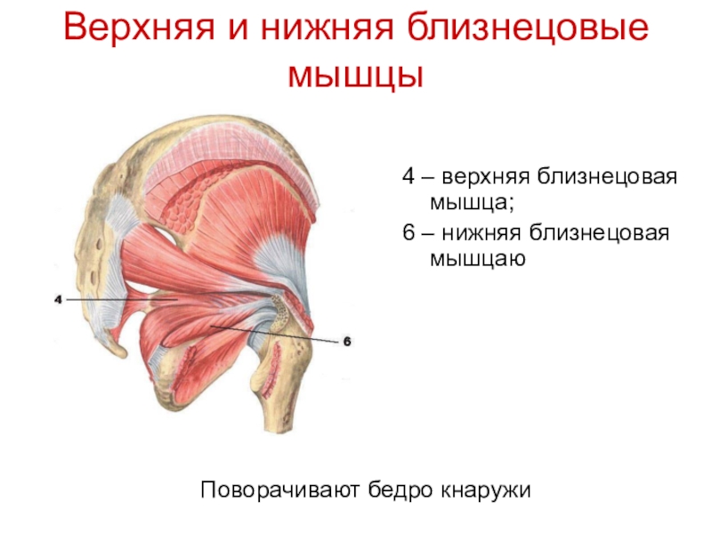 Слайд 44Верхняя и нижняя близнецовые мышцы