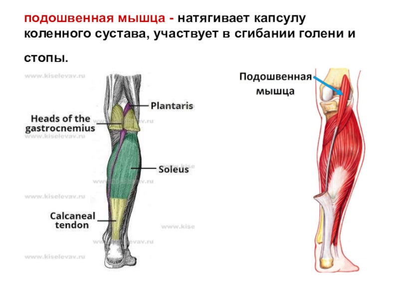 Слайд 60подошвенная мышца - натягивает капсулу коленного сустава, участвует в сгибании голени