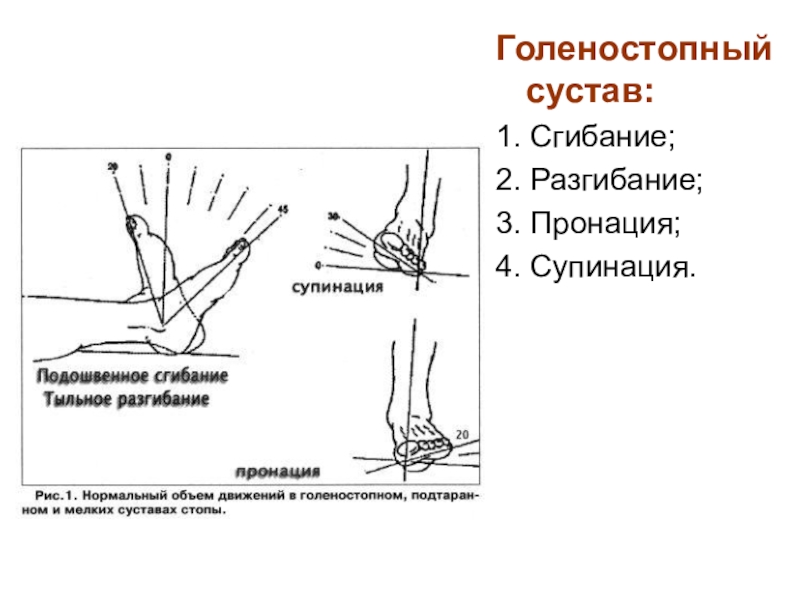 7. Движения в суставах свободной нижней конечности (тазобедренный, коленный, голеностопный, большеберцово-малоберцовые, голеностопный, плюсне-предплюсневые, плюсне-фаланговые, межфаланговые).