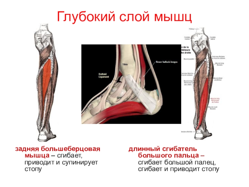 задняя большеберцовая мышца – сгибает, приводит и супинирует стопу