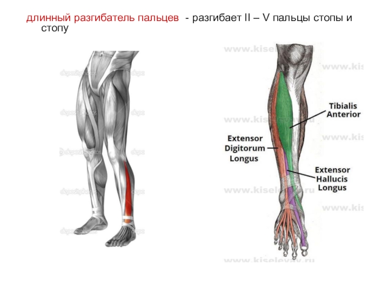 Слайд 56длинный разгибатель пальцев - разгибает II – V пальцы стопы и