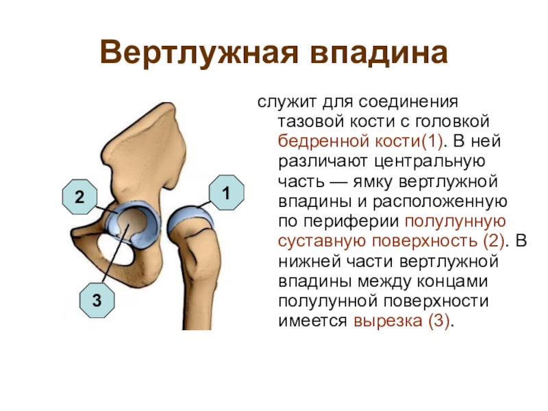 служит для соединения тазовой кости с головкой бедренной кости(1).