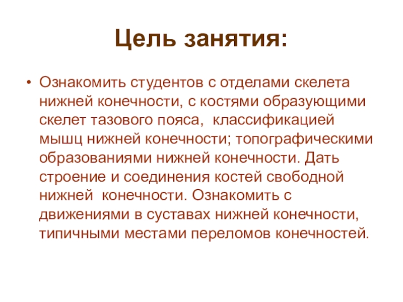 Ознакомить студентов с отделами скелета нижней конечности, с костями образующими