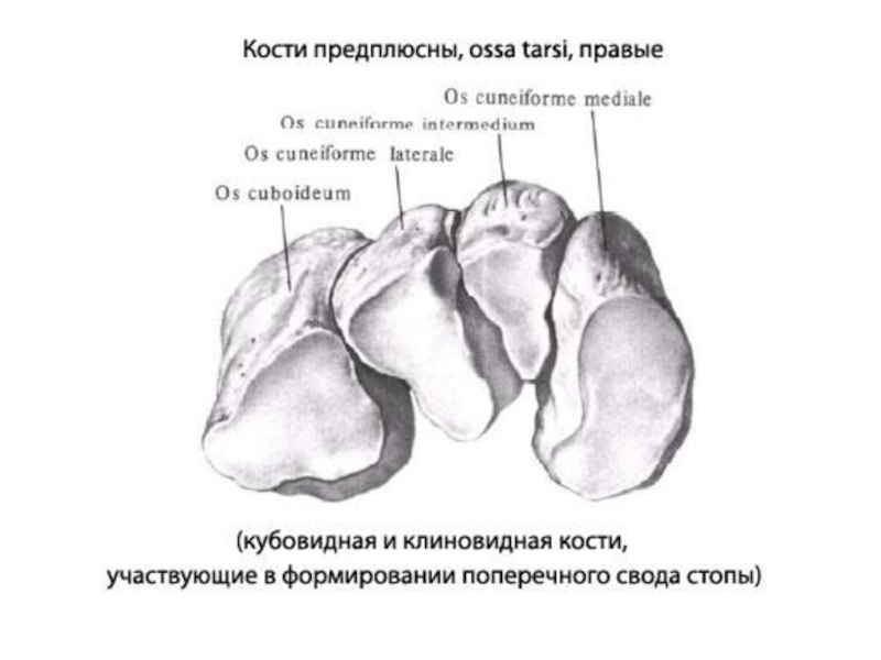 дистальный, включающий пять костей, — ладьевидную, три клиновидных и кубовидную кости.