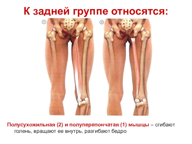 сгибают голень, вращают ее внутрь, разгибают бедро
