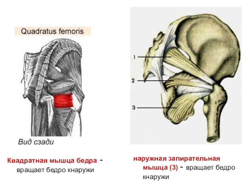 Квадратная мышца бедра - вращает бедро кнаружи