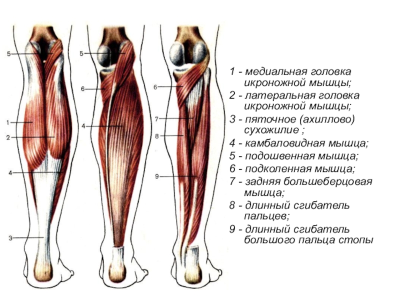 Слайд 631 - медиальная головка икроножной мышцы;