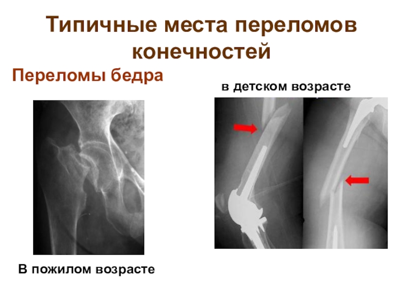 Слайд 32Типичные места переломов конечностей