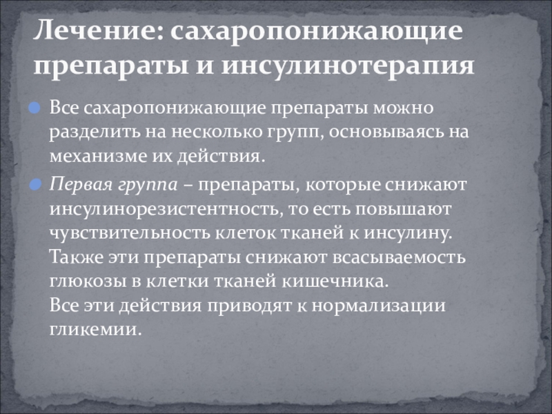 Лечение: сахаропонижающие препараты и инсулинотерапия