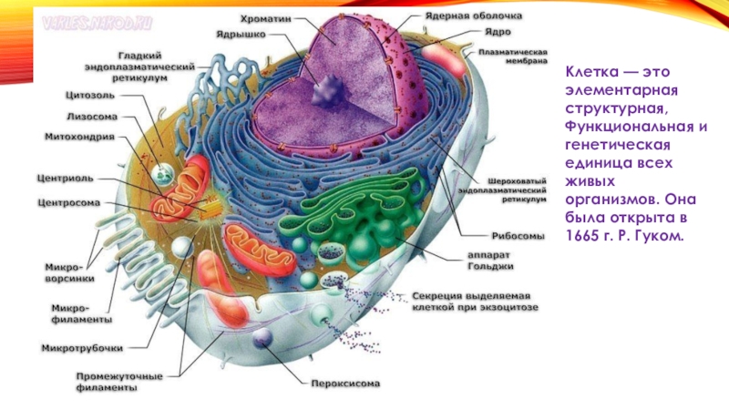 организмов. Она была открыта в 1665 г. Р. Гуком.