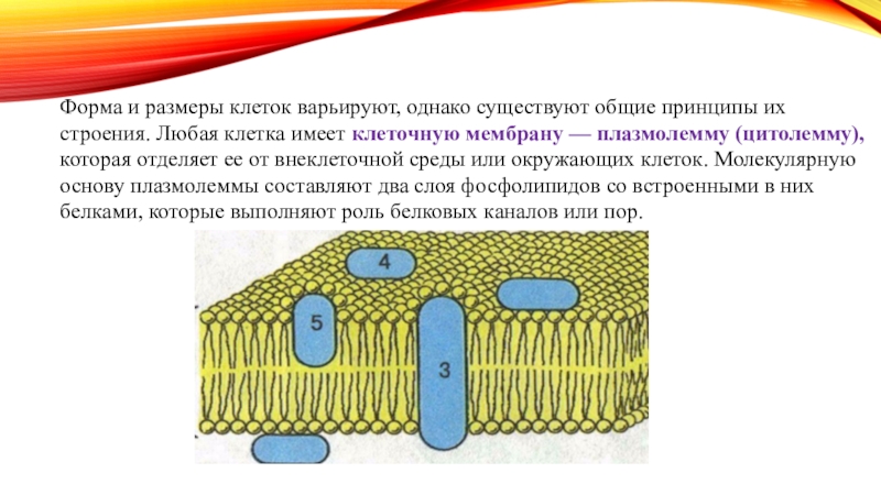 Слайд 5Форма и размеры клеток варьируют, однако существуют общие принципы их строения.
