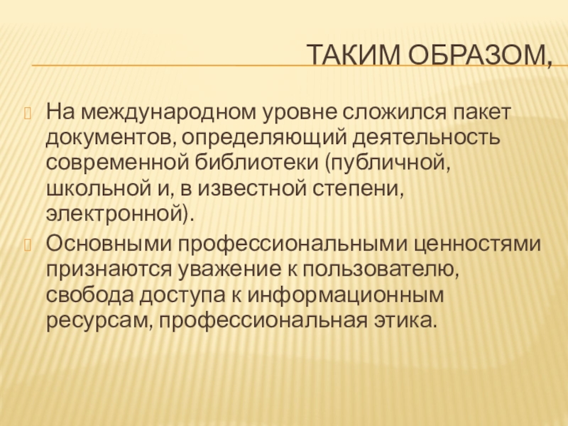 Достижение международного консенсуса в отношении новых норм и принципов.