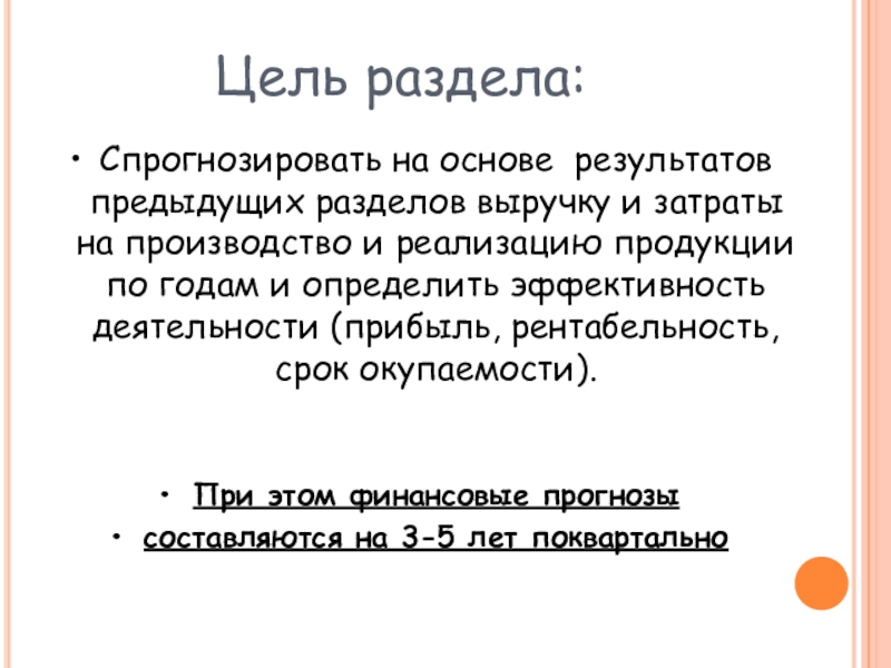 3. Объемы продаж (по годам) и ожидаемая выручка (планируемые затраты, уровень прибыльность инвестиций, прогнозируемая чистая прибыль), срок возврата заемных средств