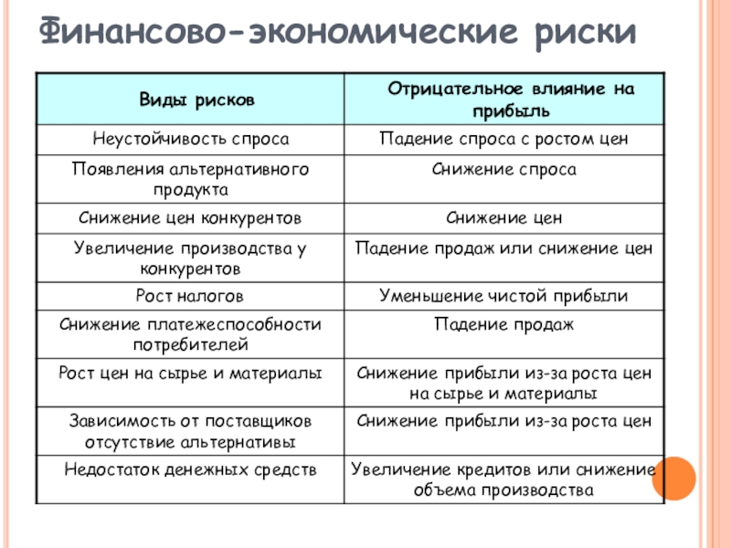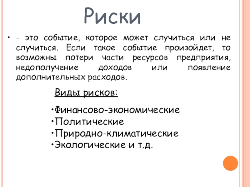 событие произойдет, то возможны потери части ресурсов предприятия, недополучение доходов или появление дополнительных расходов.