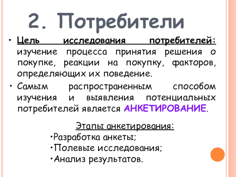 Самым распространенным способом изучения и выявления потенциальных потребителей является АНКЕТИРОВАНИЕ.