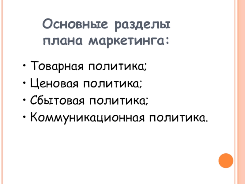 Слайд 31. Основные цели (объемы продаж, доля фирмы на рынке, ожидаемая чистая