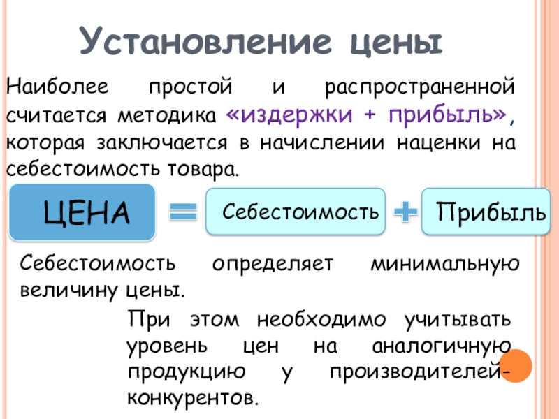 При этом необходимо учитывать уровень цен на аналогичную продукцию у производителей-конкурентов.