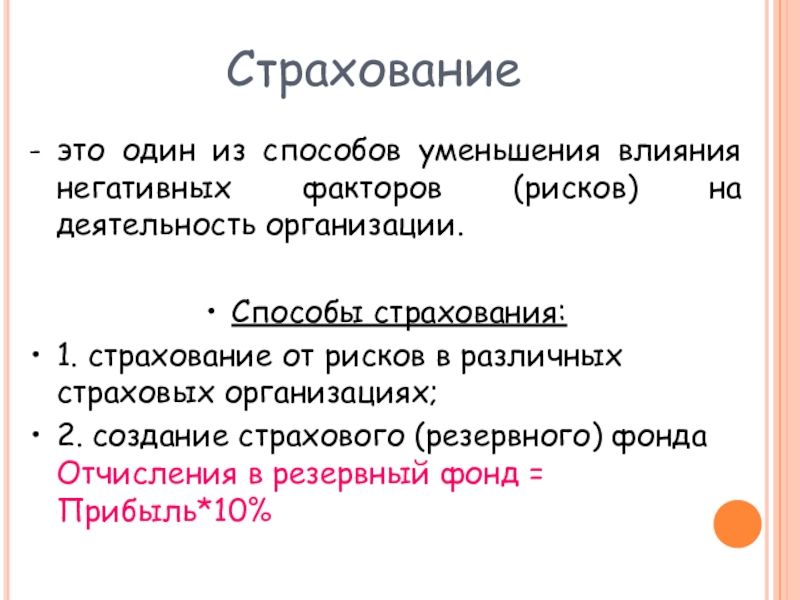 это один из способов уменьшения влияния негативных факторов (рисков) на деятельность