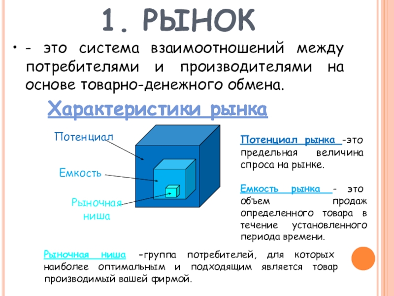Рыночная ниша -группа потребителей, для которых наиболее оптимальным и подходящим является товар производимый вашей фирмой.