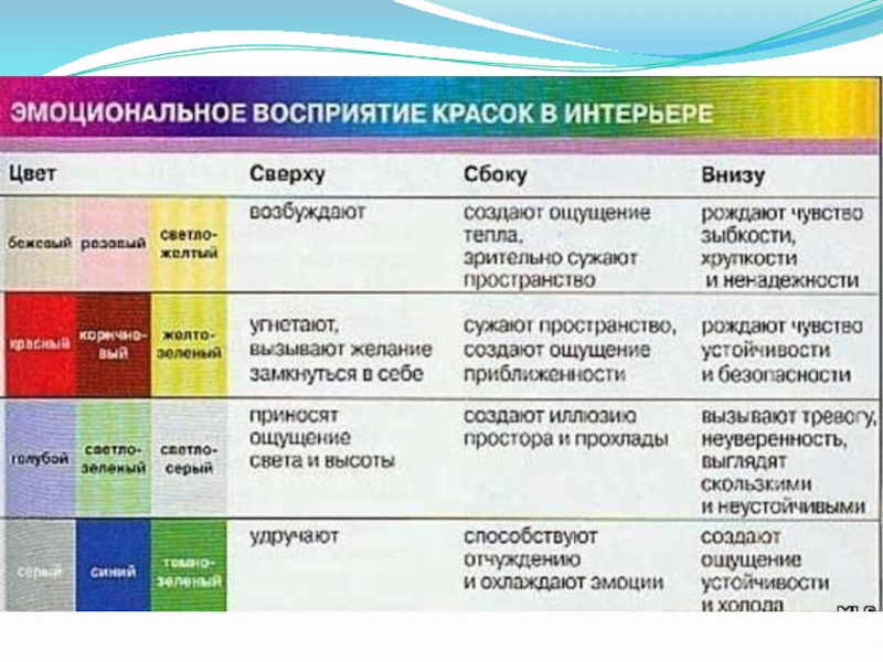 Цвет интерьера оказывает существенное влияние на психику, эмоции и
