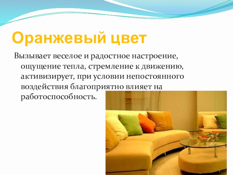 3. Оранжевый цвет оказывает на человека следующее влияние: