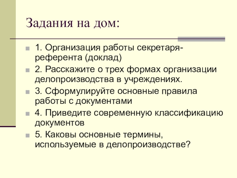 2 вариант: Документооборот, контроль исполнения документа, служебный документ, оригинал документа, дубликат документа