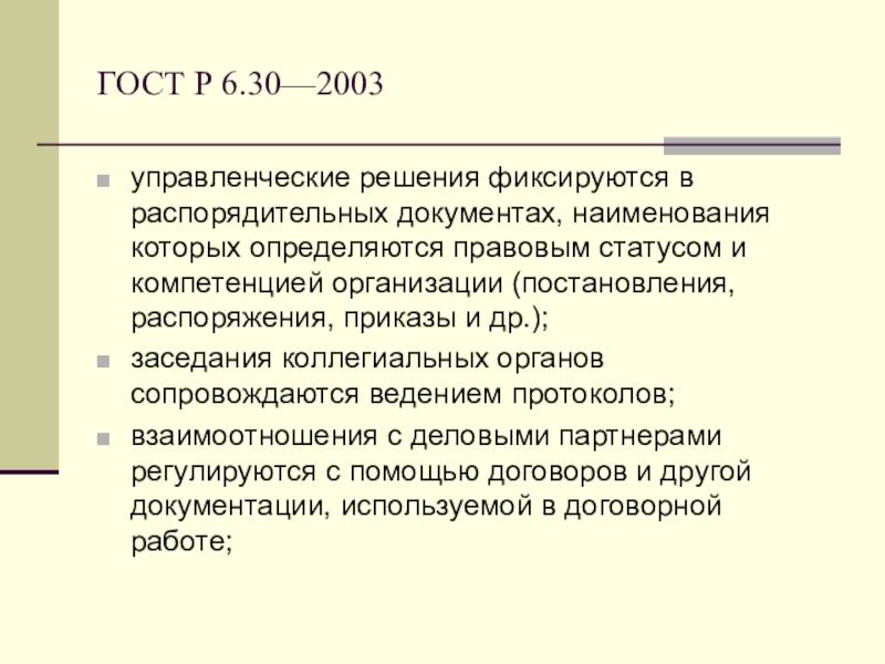 управленческие решения фиксируются в распорядительных документах, наименования которых определяются