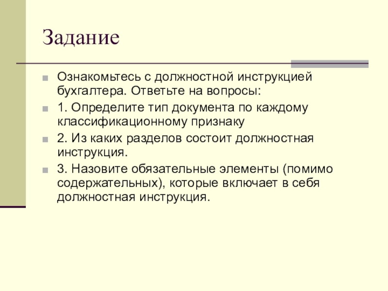 3. Назовите обязательные элементы (помимо содержательных), которые включает в себя должностная инструкция.