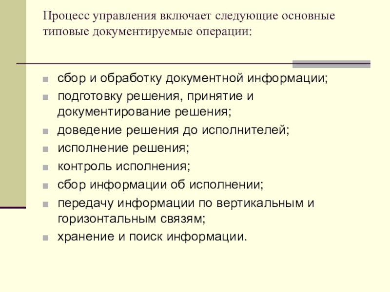 Слайд 3Процесс управления включает следующие основные типовые документируемые операции: