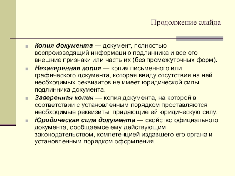 Копия документа — документ, полностью воспроизводящий информацию подлинника и все