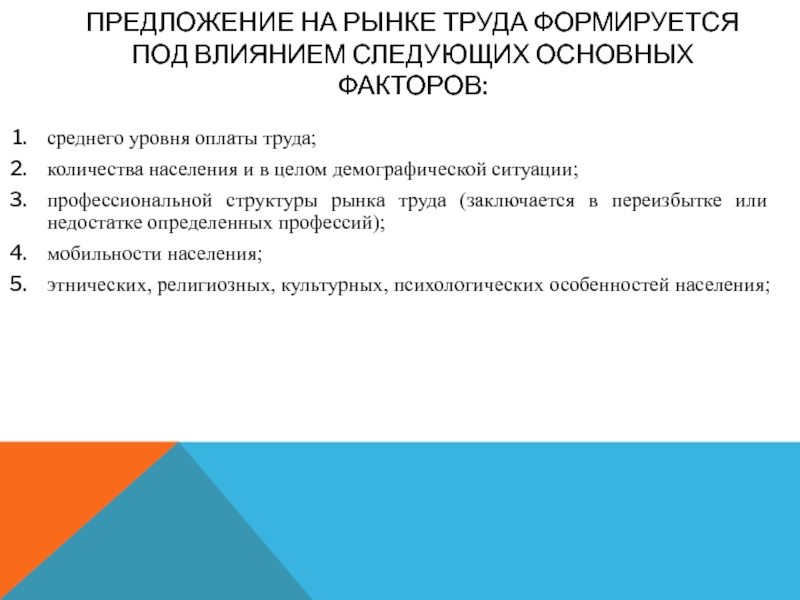 Предложение на рынке труда — это совокупное предложение ресурсов труда работников в стране при всех возможных ценах на труд.