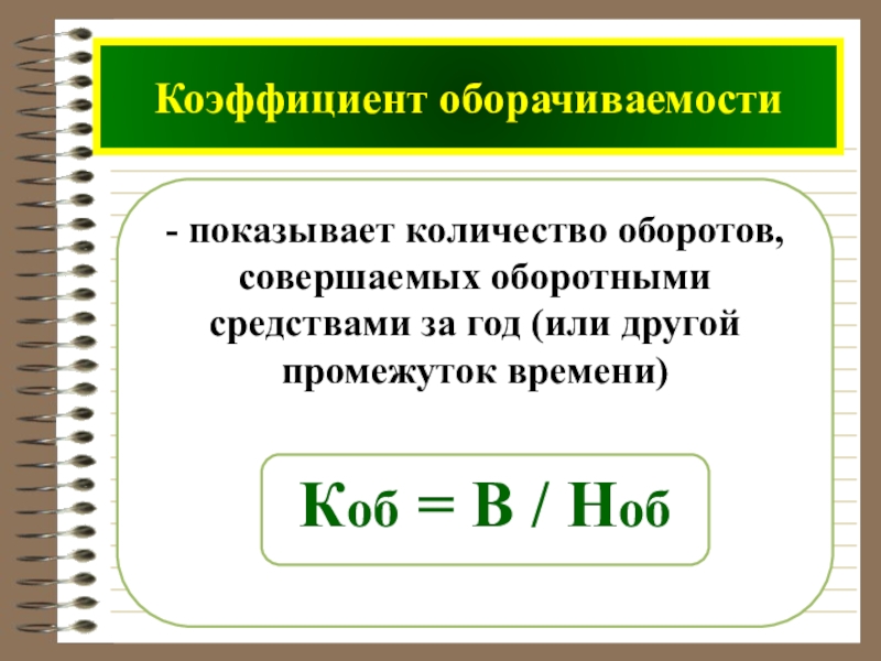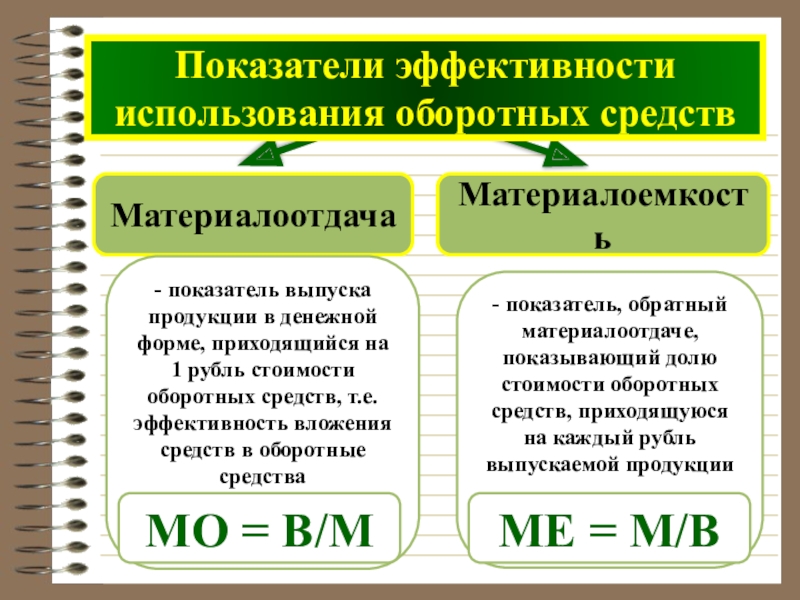 - показатель выпуска продукции в денежной форме, приходящийся на 1 рубль стоимости оборотных средств, т.е. эффективность вложения средств в оборотные средства