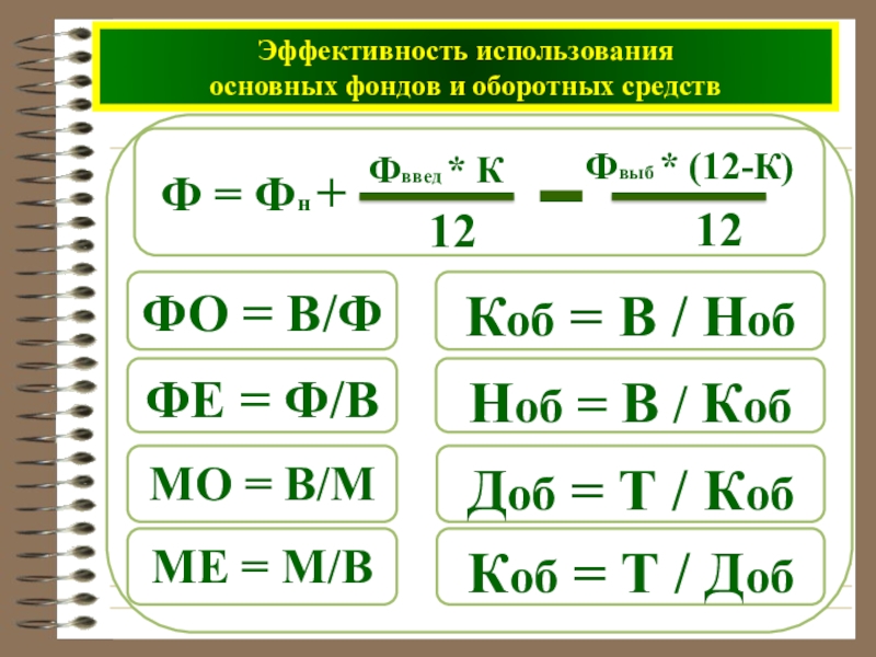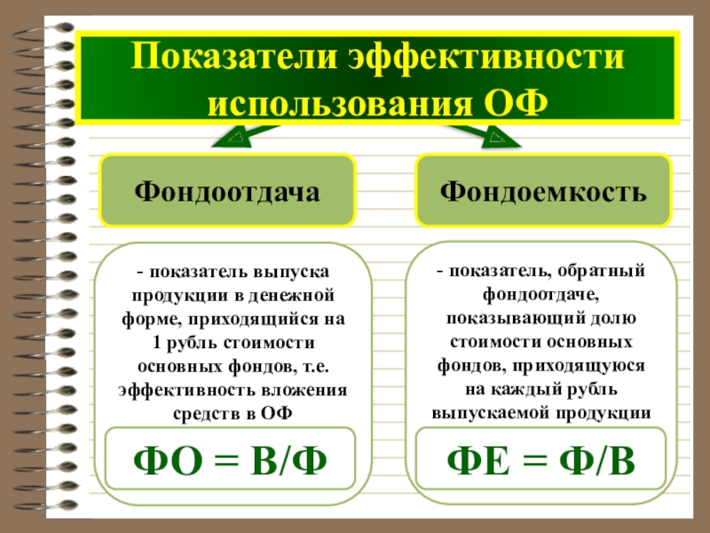 - показатель выпуска продукции в денежной форме, приходящийся на 1 рубль стоимости основных фондов, т.е. эффективность вложения средств в ОФ