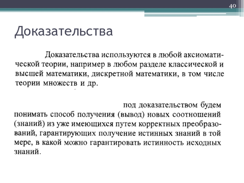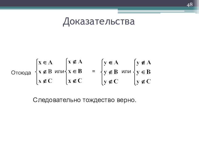 Для доказательств будем использовать следующие обозначения ({ - и ; [ - или ) и соотношения :