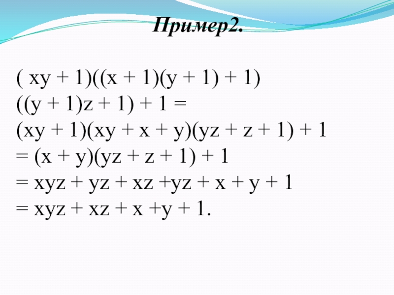 Пример2. ( xy + 1)((x + 1)(y + 1) + 1)((y + 1)z + 1) + 1