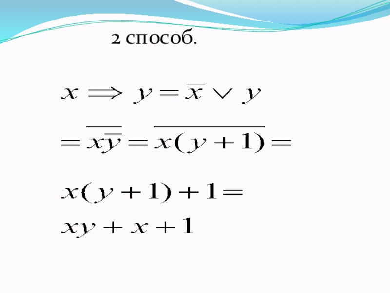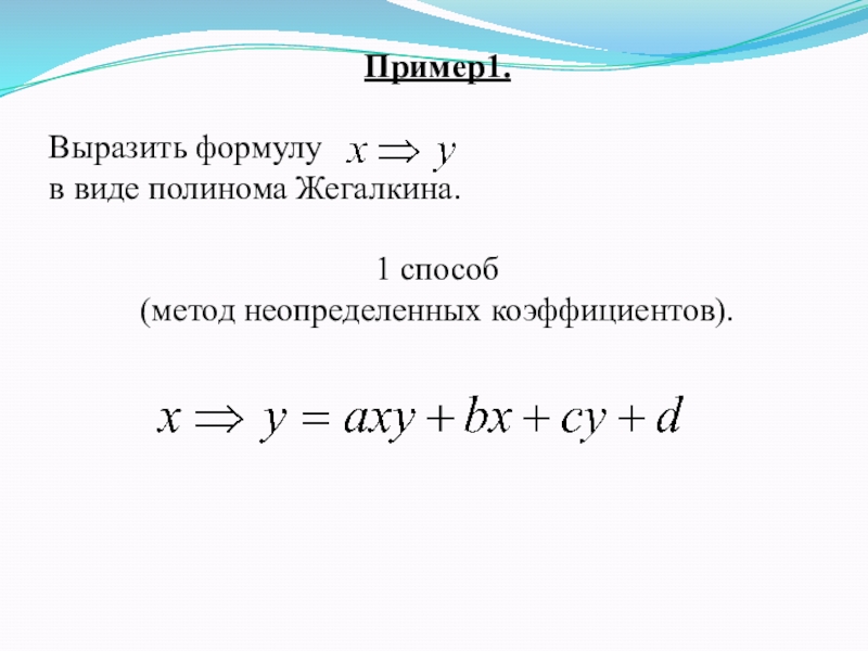 Пример1. Выразить формулу в виде полинома Жегалкина.1 способ (метод неопределенных коэффициентов).