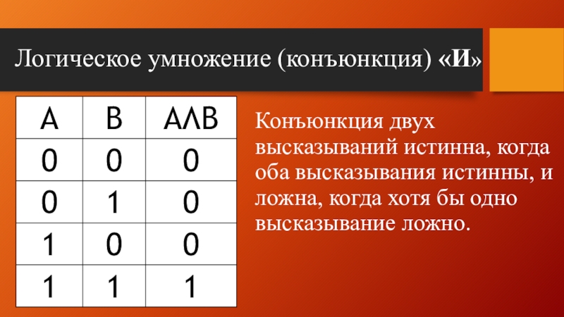 Таблица истинности – это таблица, в левой части которой записывается набор аргументов, а в правой части - соответствующие значения логической функции.