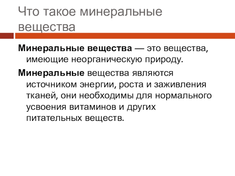 Что такое минеральные веществаМинеральные вещества — это вещества, имеющие неорганическую природу. Минеральные вещества являются источником энергии, роста и заживления тканей,