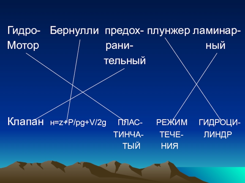 БАРОМЕТР ВЯЗКОСТЬ НАПОР ЗОЛОТНИК  ПЕРЕЛИВНОЙГИДРО-  Н=z+Р/pg+V/2g  ДАВЛЕНИЕ  КЛАПАН  ЖИДКОСТЬРАСПРЕ-ДЕЛИ-ТЕЛЬ