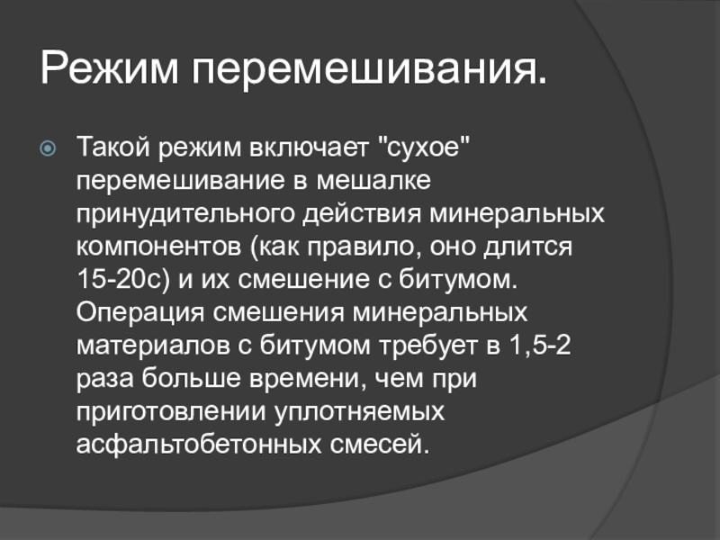 Такой режим включает "сухое" перемешивание в мешалке принудительного действия минеральных