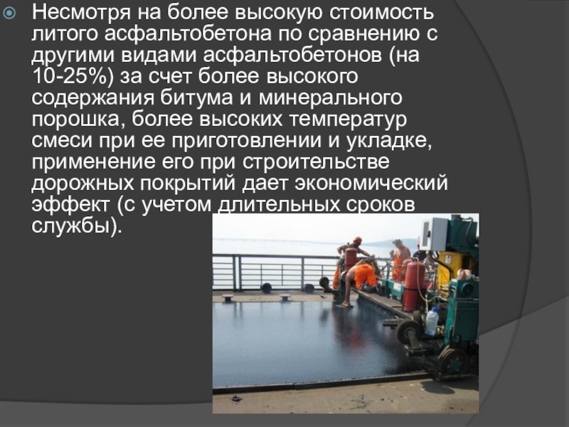 Слайд 6Несмотря на более высокую стоимость литого асфальтобетона по сравнению с другими