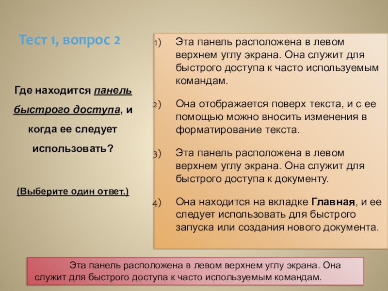 Эта панель расположена в левом верхнем углу экрана. Она служит для быстрого доступа к документу.