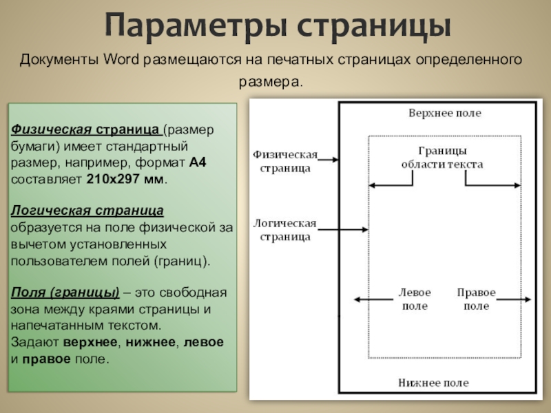Документы Word размещаются на печатных страницах определенного размера.