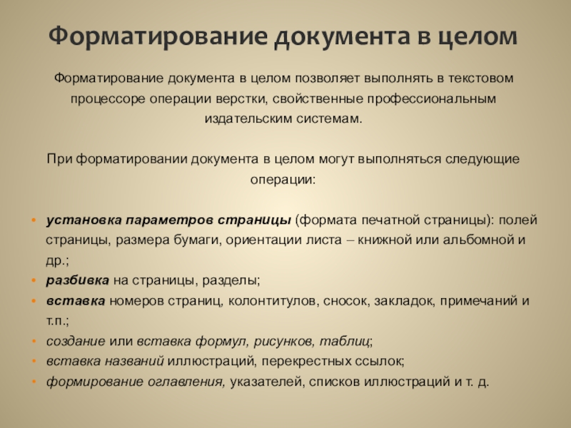форматирование документа в целом