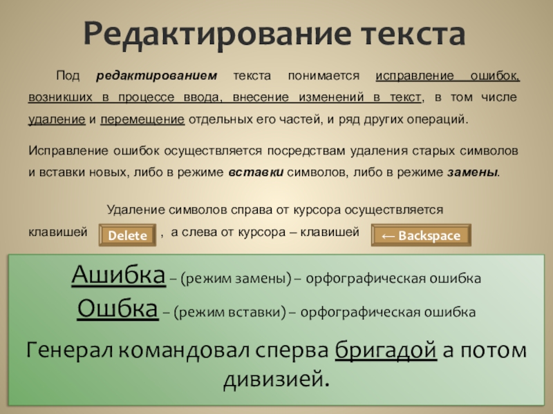 Ашибка – (режим замены) – орфографическая ошибка