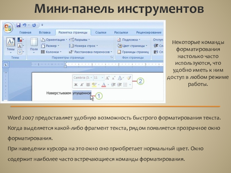 Word 2007 предоставляет удобную возможность быстрого форматирования текста.